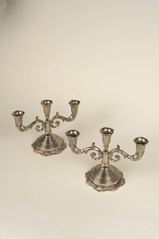 Antique Three-Arm Silver-Plated Candelabra | Set of 2