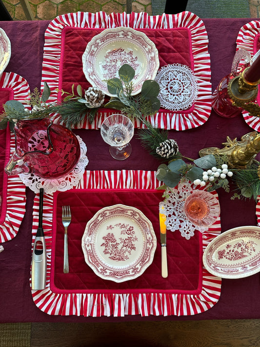 Red Velvet Frill Placemats | Set of 2