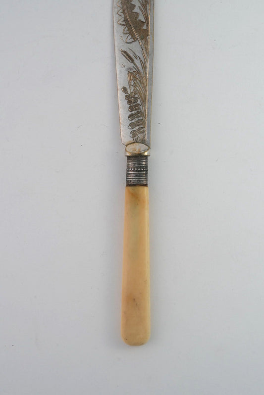 Antique Fruit Knives with Etched Blades & Cream Handles | Set of 3