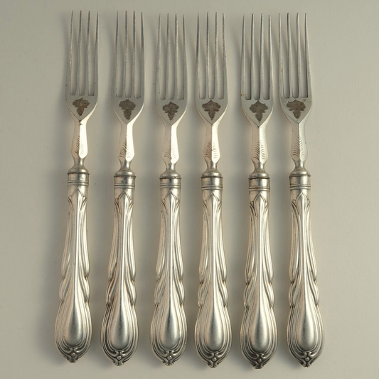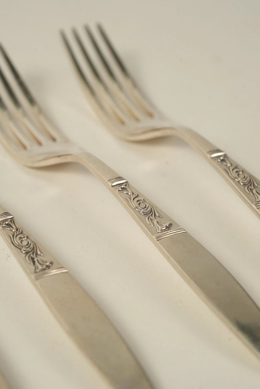 Set of 6 | Vintage Silver-Plated Dinner Forks with Ornate Handles
