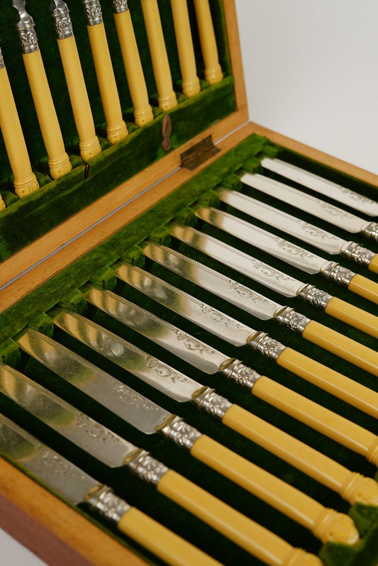 Set of 6 | Vintage Silver-Plated Dinner Knives with Ornate Handles