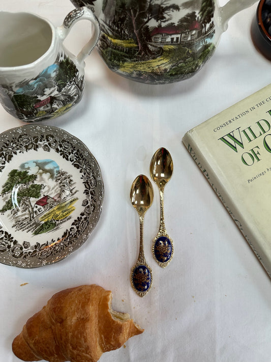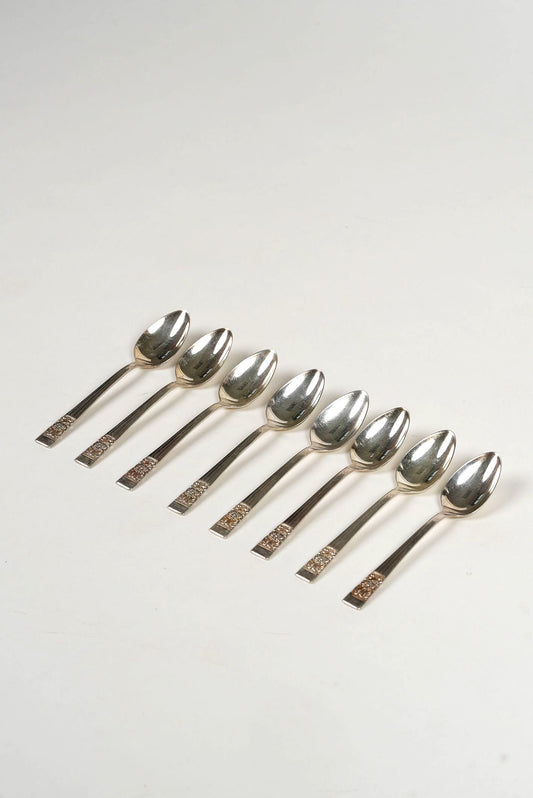 Vintage Tea Spoons With Gilded Floral Inlay | Set of 6