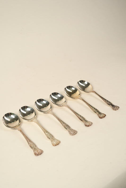 Set of 6 | Vintage Silver-Plated Soup Spoons with Ornate Detailing