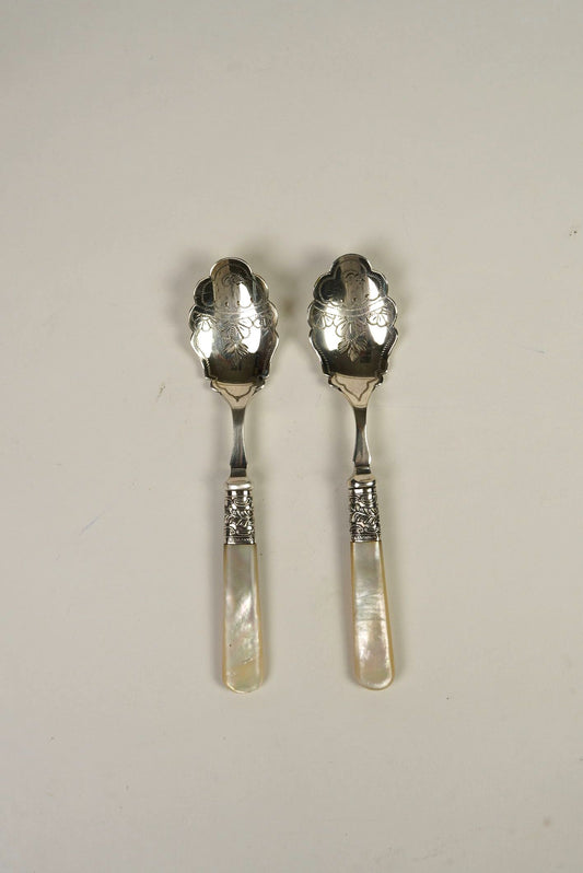 Victorian Silver-Plated Spoons with Mother-of-Pearl Handles | Set of 2