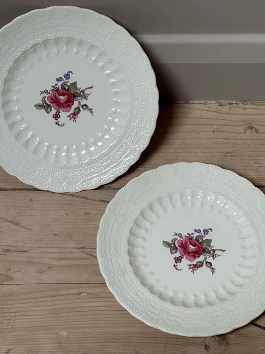 Spode Copeland English Pink Rose Embossed Plates | Set of 8