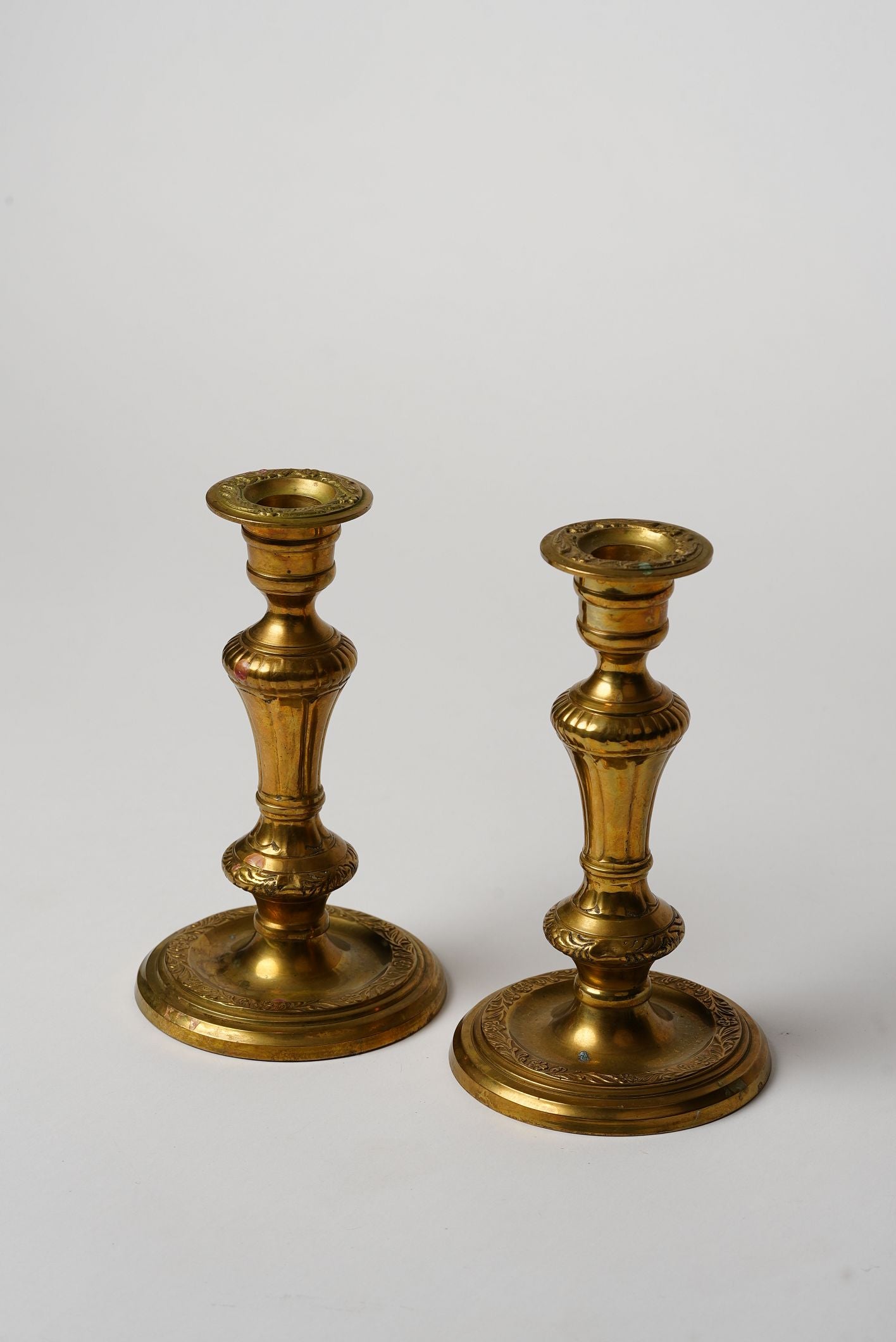 This pair offers not only functional use as candlesticks but also historical significance as decorative arts objects. The weight, symmetry, and quality of casting indicate skilled craftsmanship, making them desirable additions for collectors of 19th century metalwork or those seeking authentic period furnishings. Their warm patina and balanced proportions speak to generations of careful preservation, ensuring they remain as relevant today as when first produced.
