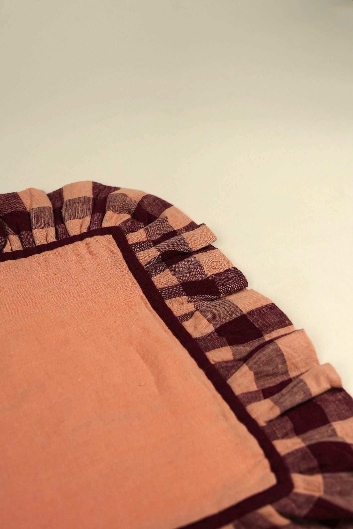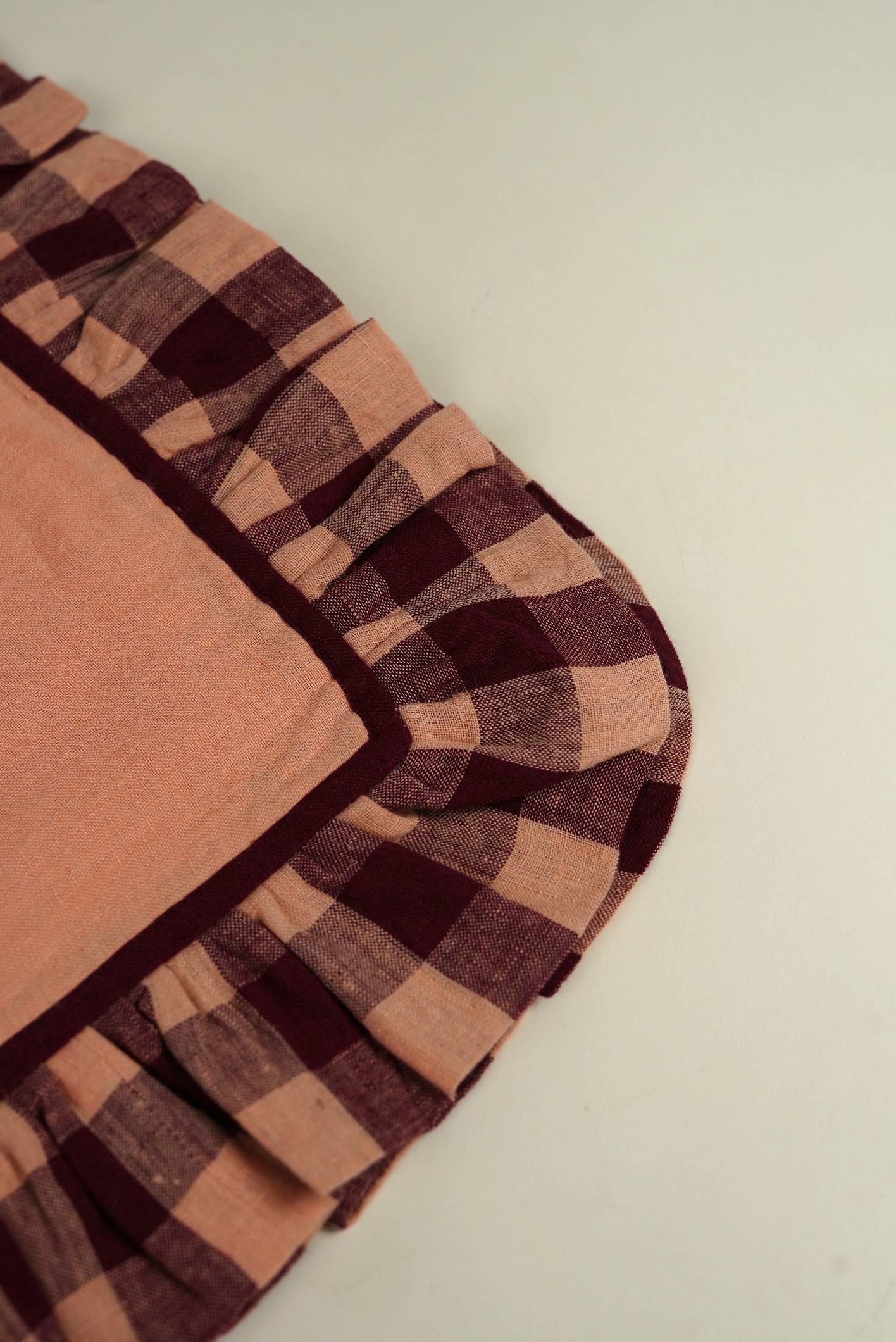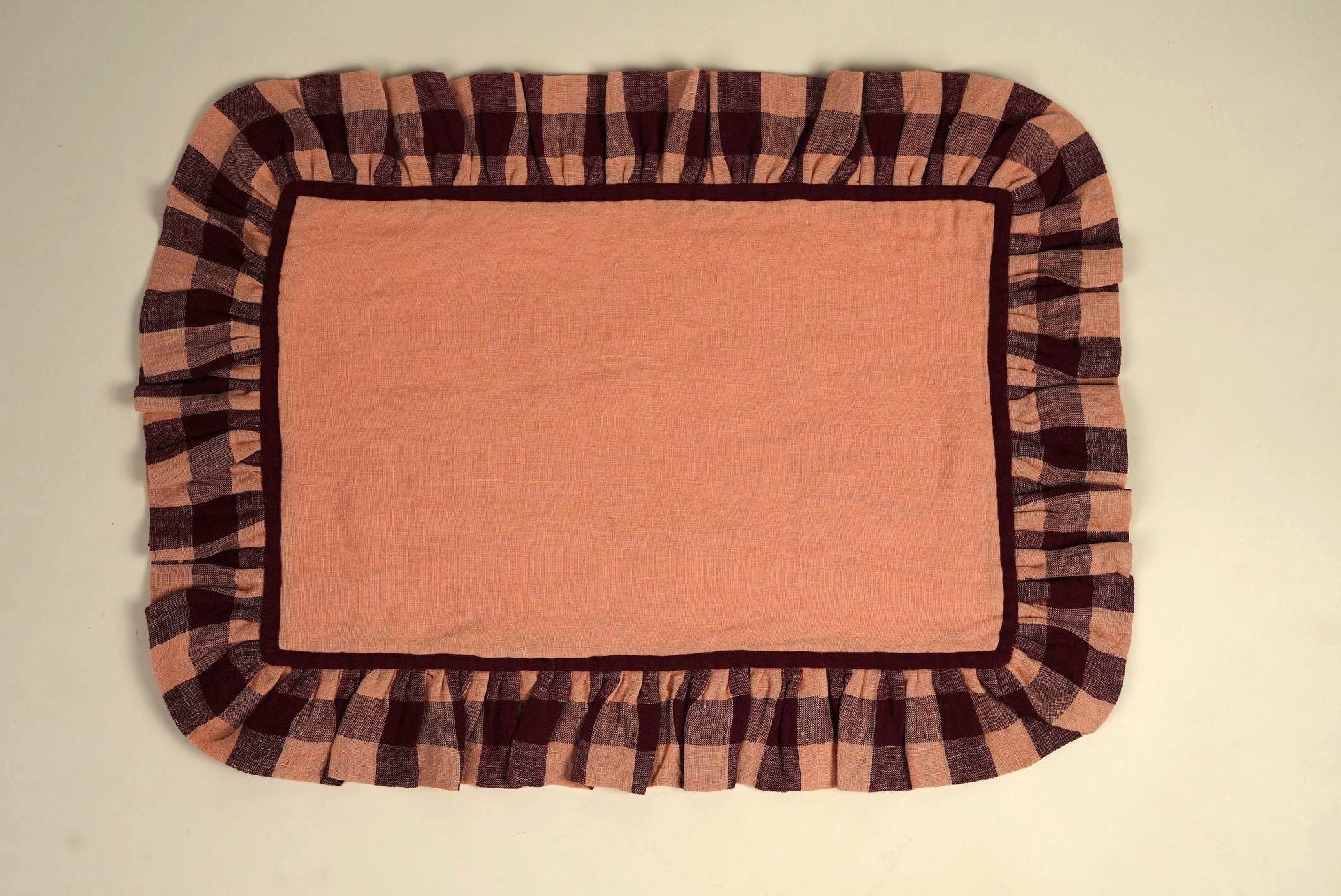 Peach Linen With Gingham Frill Placemats | Set of 2