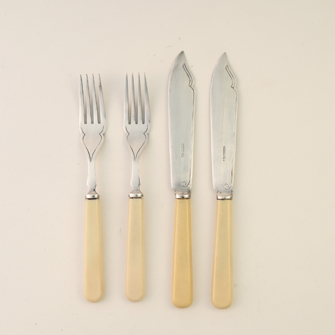 Elevate your table with this exquisite set of 6 vintage forks by the esteemed James Dixon & Sons, a renowned silversmith and cutlery maker based in Sheffield, England. Known for their craftsmanship and timeless design, each fork features a delicate cream-toned handle paired with a silver-plated head, showcasing the signature silhouette detailing typical of mid-century British cutlery.